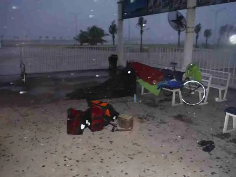 Be prepared for changing weather conditions. I was once caught in a cyclone off the coast of Vietnam, camping on the hardstanding of a ferry port. Within a few minutes, there was a puddle in my tent and everything was soaked. I spent the next week drying out my entire kit. Freak weather can be a challenge.